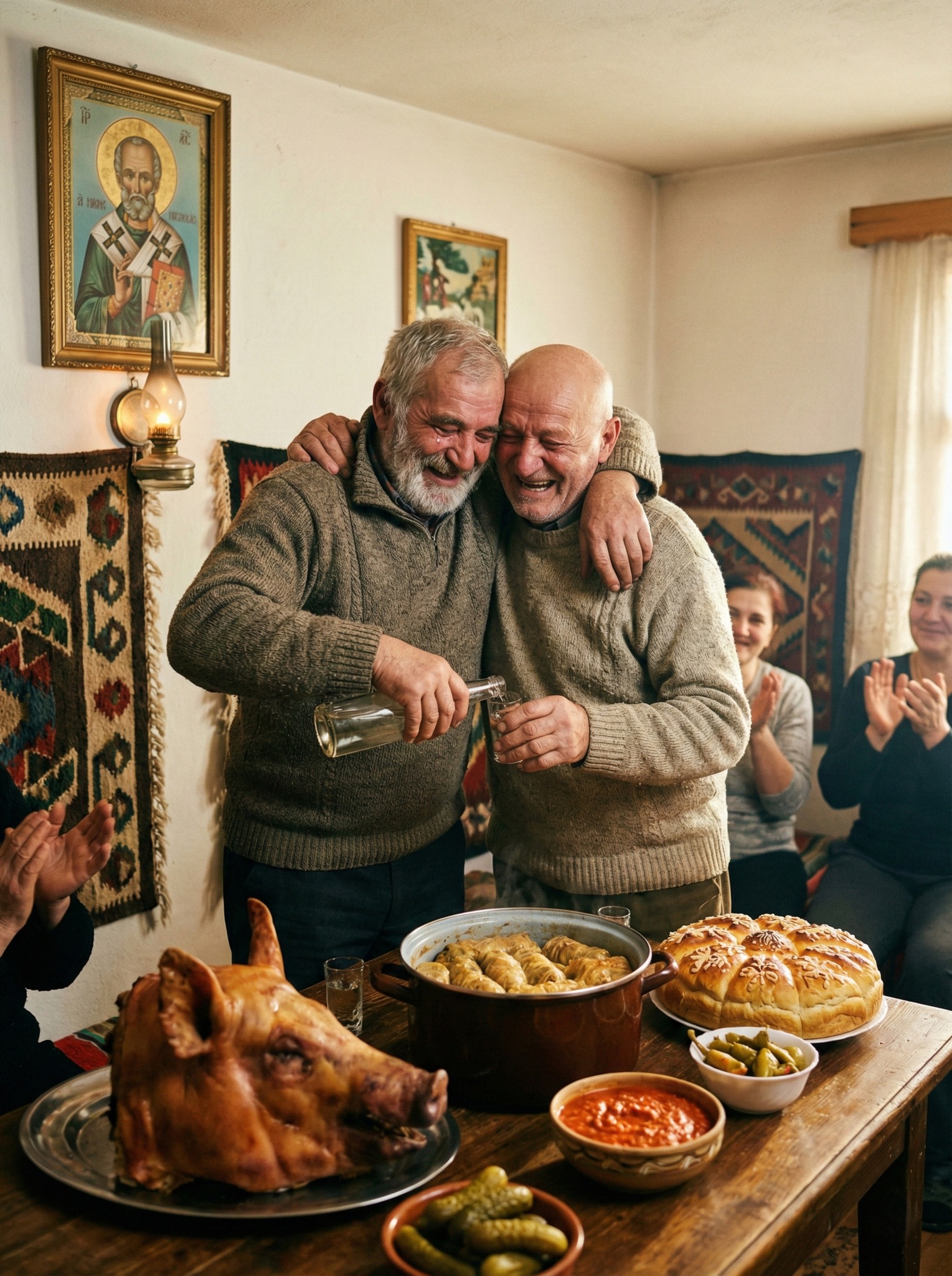 Mirisi praznika su se mešali u vazduhu – pečenica iz Slavkove kuće, tamjan iz njegove. U tom trenutku, setio se rečenice svog oca o snopu koji se ne lomi dok je zajedno. Shvatio je da više nema vremena za čekanje. Prikupio je hrabrost, uzeo staru fotografiju sa Slavkom, onu koja ga je podsećala na srećne dane, i odlučio da krene ka bratu. Uzeo je flašu rakije koju je čuvao godinama i pogaču koju je sam umesio, umotanu u staru vezenu krpu koju je nekada vezla njihova majka. Ova simbolika bila je više od običnog poklona – to je bila nada za ponovnu uspostavu veze.
