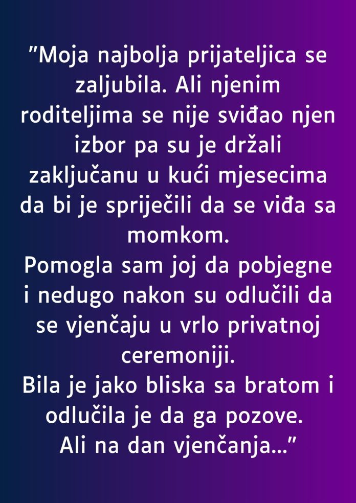 U srcu svake velike ljubavne priče leži ne samo romansa, već i borba za slobodu i pravo na vlastiti izbor. Ova priča se vrti oko moje najbolje prijateljice, koja se suočila s neobičnim izazovima kada se zaljubila. Njena ljubav prema momku koji nije bio odobren od strane njene porodice, donijela je niz emotivnih i psiholoških previranja koja su je natjerala da preispita svoje vrijednosti, kao i vrijednosti porodice koja ju je odgajala. Ova priča nije samo pojedinačna borba, već odražava i šire društvene probleme koji se tiču slobode izbora, posebno u kontekstu tradicionalnih normi i očekivanja.