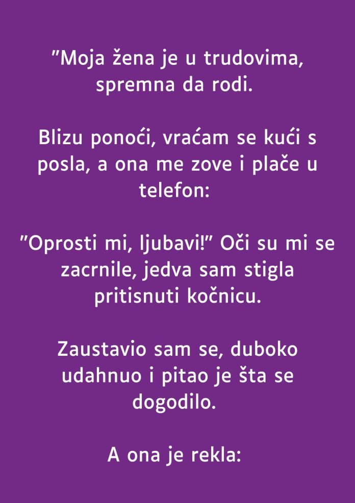 Večer kada je moja supruga počela sa trudovima bila je ispunjena uzbuđenjem i nesigurnošću. Bio sam na putu kući nakon napornog dana na poslu, kada me iznenada iznenadio poziv od nje, čiji ton je bio ispunjen strahom i tjeskobom. U tom trenutku, cijeli moj svijet se činio kao da je stao – srce mi je počelo brže kucati, a misli su mi se vrtjele u krug. Sva sreća i iščekivanje koja su me pratila tokom devet mjeseci, sada su se pretvorila u tjeskobu, a pitanja su se nagomilavala. Hoće li biti sve u redu? Kako ću joj pomoći? Da li će beba biti zdrava?