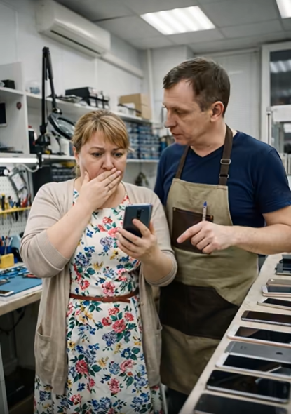 Nakon što je popravio telefon i uključio ga, nastao je trenutak šoka. Tehničar se iznenada ukočio i izgledao je zbunjeno. “Moraš ovo vidjeti…” rekao je tihim glasom. Iako nisam željela gledati, znala sam da nešto nije u redu. Na ekranu se pojavila poruka.