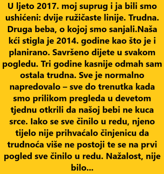 U ljeto 2017. godine, Marko i Ana doživjeli su trenutak koji je promijenio njihov život. Test na trudnoću pokazao je dvije ružičaste linije, što je za njih značilo da će postati roditelji po drugi put. Njihova prva kćerka, mala Maja, rođena 2014. godine, bila je izvor neizmjerne sreće. Zdrava i vesela, obogatila je njihove živote i donijela im radost koju samo roditelji mogu doživjeti. Stoga, očekivanje dolaska novog člana porodice izgledalo je kao prirodan slijed stvari, ispunjeno radošću, uzbuđenjem, i planovima za budućnost.