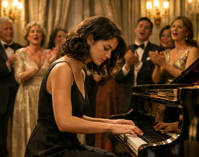 Sergej je pristupio, želeći da je zaustavi, ali Marina više nije slušala njegove naredbe. Sela je za klavir i, bez oklijevanja, pritisnula dirke. Tada je muzika postala njen glas. Prvi tonovi su bili tihi, setni, ali uskoro je zvuk postao snažan, prepun života. Sala je utihnula, konobari su prestali da se kreću, a gosti su prestali da govore. Svi su stajali, upijali svaki ton, i ništa više nije im bilo važno.